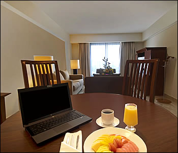 Habitaciones ubicadas en el octavo piso. Cuenta con una recámara con cama King Size y una salita. Disponibles una de no fumar y 2 de no fumar; ideal para estancias prolongadas. |